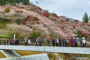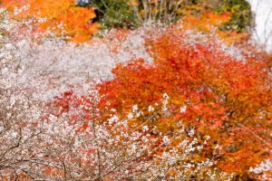 Nếu bạn đủ may mắn để đến được vùng Chubu của Nhật Bản mùa thu này, công viên Obara Fureai ở tỉnh Aichi là điểm đến không nên bỏ qua, vì bạn sẽ được thưởng thức một mùa thu kỳ lạ, anh đào nở giữa mùa lá đỏ, tạo nên một cảnh tượng thiên nhiên tuyệt đẹp.