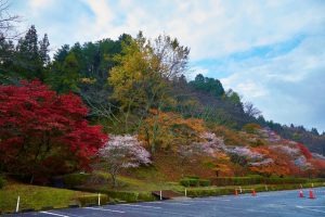 Nếu bạn đủ may mắn để đến được vùng Chubu của Nhật Bản mùa thu này, công viên Obara Fureai ở tỉnh Aichi là điểm đến không nên bỏ qua, vì bạn sẽ được thưởng thức một mùa thu kỳ lạ, anh đào nở giữa mùa lá đỏ, tạo nên một cảnh tượng thiên nhiên tuyệt đẹp.